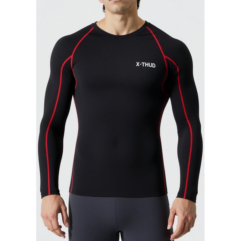 Men Compression Shirts Long Sleeve Base Layer Rash Guard Tshirt Gym Athletic Tops Undershirt Black S