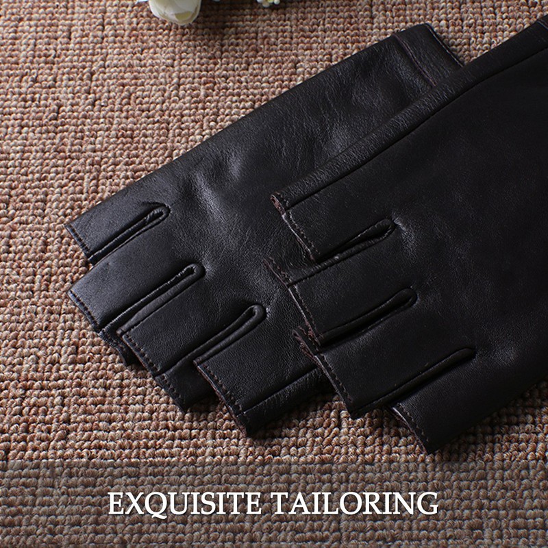 Men Fingerless Gloves - Nappaglo Lambskin Leather Half Finger Driving Outdoor