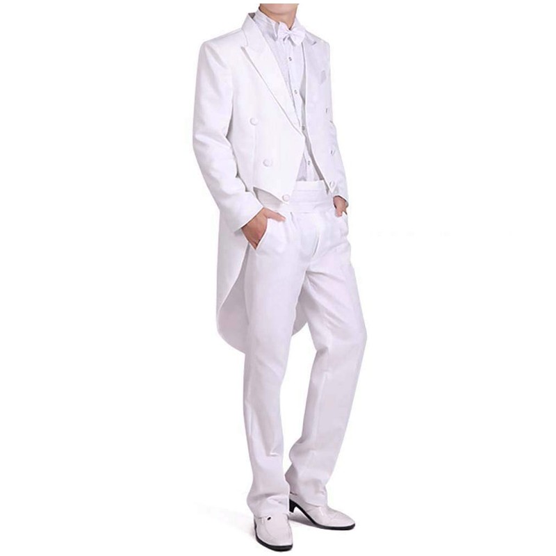 Men Formal Magic Show Costume Tailcoat Jacket Tuxedo Suits 4 Piece Chorus Musician Cosplay Adult Magician Tailcoat (M, White)