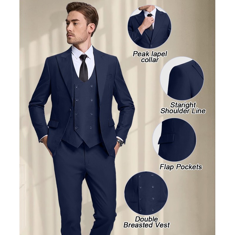 - 3 PIECE SET: Our 3-piece men set, in addition to a jacket, a pair of pants, and a vest, you can get a fine suit combination.