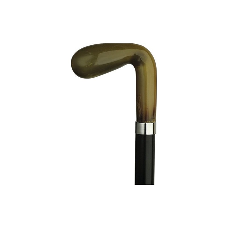 Men's imported genuine horn golf shaped handle, genuine black ebony tapered shaft, 36" long with rubber tip