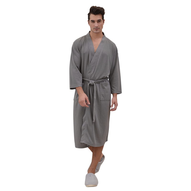 Men Kimono Waffle Dressing Gown Lightweight Summer Robes Loose Nightwear Comfy Pajamas Japanese Bathrobe Sleepwear Home Casual Wear with Pocket (UK, Alpha, One Size, Regular, Regular, Grey)