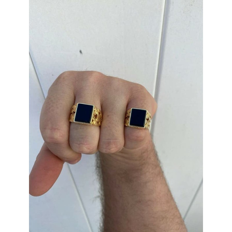 Men's 14k Gold Over Real Solid 925 Sterling Silver Ring - Natural Black Onyx Ring - Rectangular Hip Hop Large Ring - Gorgeous Pinky Ring (10)