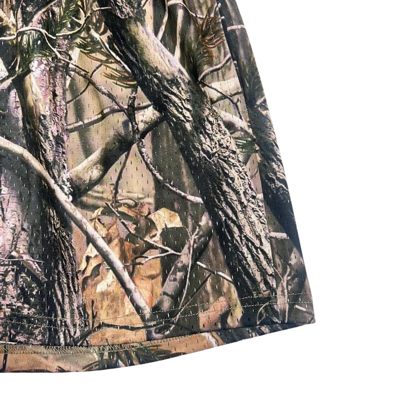 Men's 5 Inches Inseam Camo Real Tree Print Mesh Lined Athletic Basketball & Beach Shorts (US, Alpha, Medium, Regular, Regular, Brown)