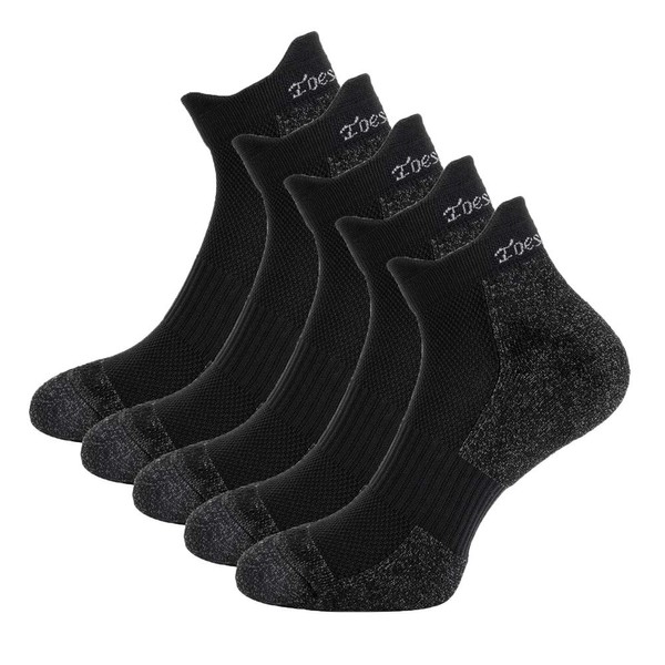 Men's 5-Pack Black Anti-Odor Quick-Dry Padded Running Ankle Socks, L