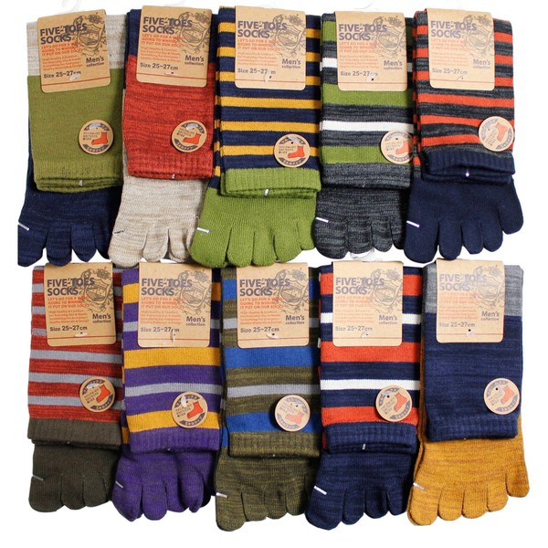 Men's 5-Toe Socks, Set of 10, Drawstring Series, 9.8 - 10.6 inches (25 - 27 cm), multicolor