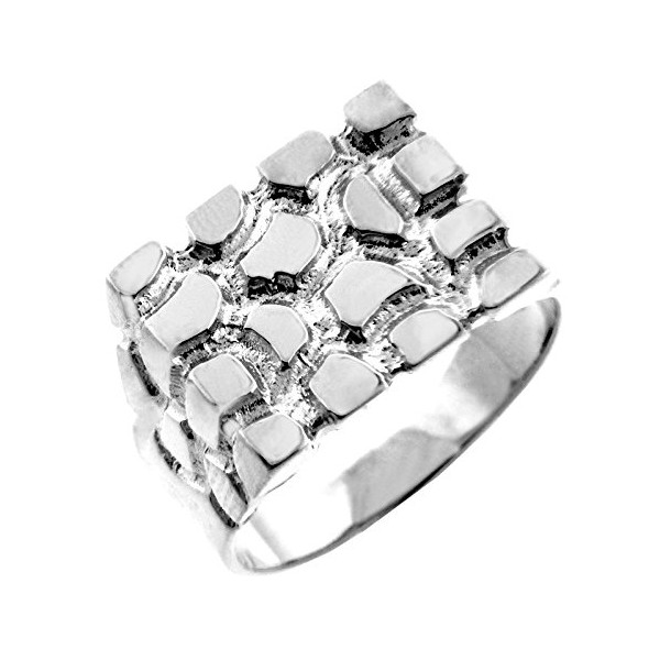 This classic men's nugget ring is individually hand polished to a lasting high sheen polish finish. Made by hand in the U.S.A. at our state-of-the-art factory in California, this Sterling Silver Men's Armour Nugget Ring is of outstanding quality, embued with rugged elegance.