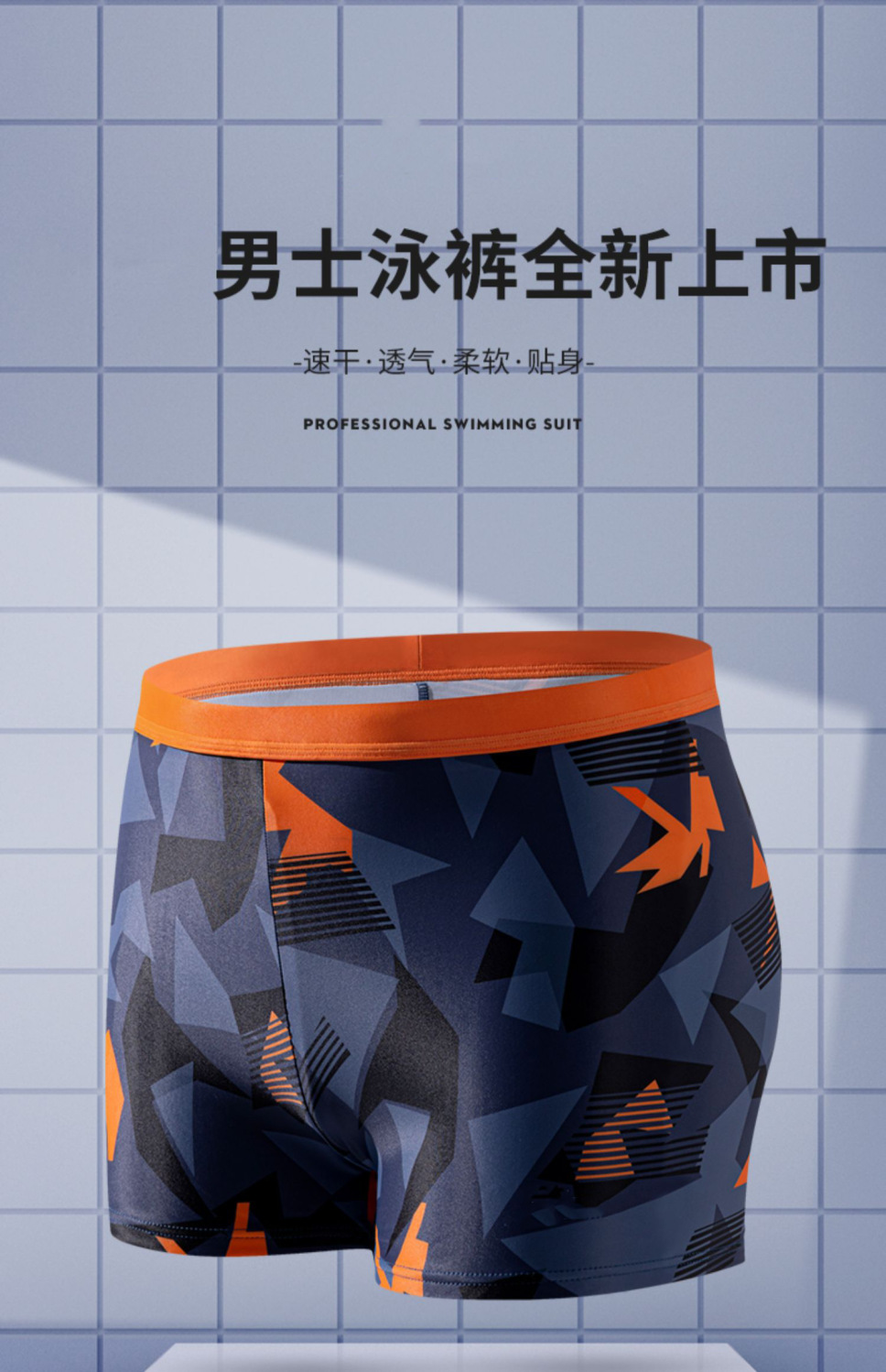 Men's A578 Plus Size Quick-Drying Boxer Swim Trunks for Modest Coverage Plus Blue Solid Geometric + Free Size [45.00 Kg-90.00 Kg] 10ea