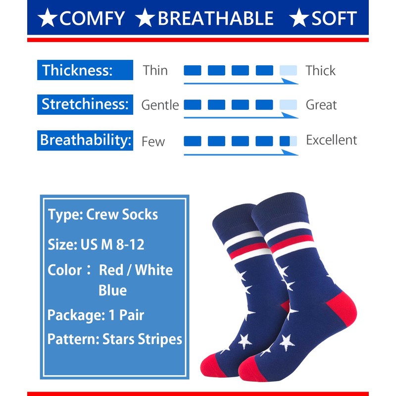 Men's American Flag Socks, Patriotic Stars Stripes Red White and Blue Novely Sock