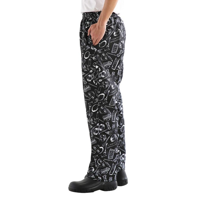 Men’s and Women's Baggy Printed Chef Pants Kitchen Uniforms with Elastic Waist Floral Restaurant Work Pants Style1 M