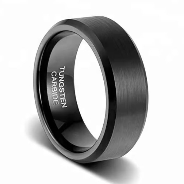 Men's Black Solid Tungsten 8mm Ring Size 6-15 - Hand Crafted Solid Walnut Box - Great Gift for Men - Perfect Wedding Band (Without Box, 7 US)