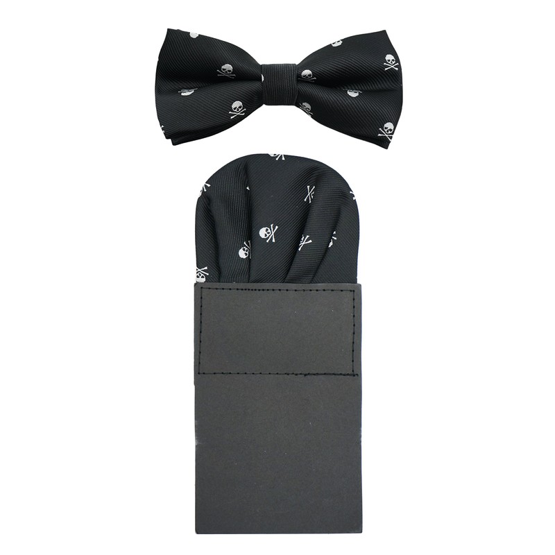 Bow Tie Pocket Square Set - Skull Pattern