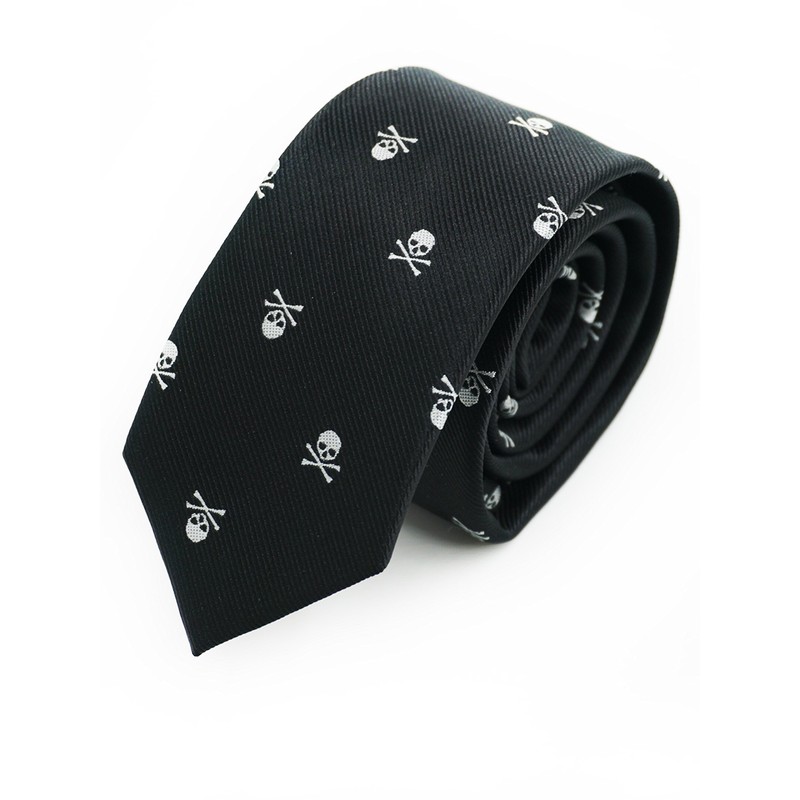 Modern tie with skull pattern. Ideal for both business and everyday life: casual, formal, business meeting, festive events, romantic dating, wedding, party, banquet.