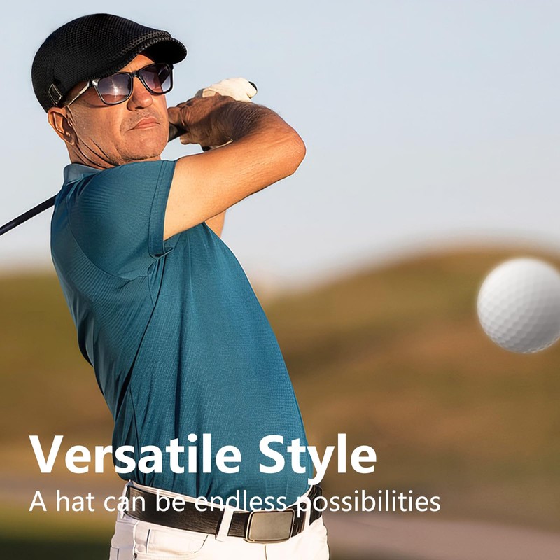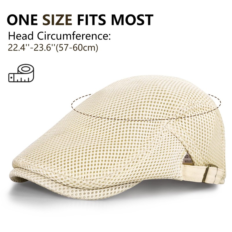 Men's Breathable Mesh Summer Flat Hat Driving Hats and Caps Newsboy Beret Ivy Cabbie Flat Cap (US, Alpha, One Size, Medium, Dark Grey)
