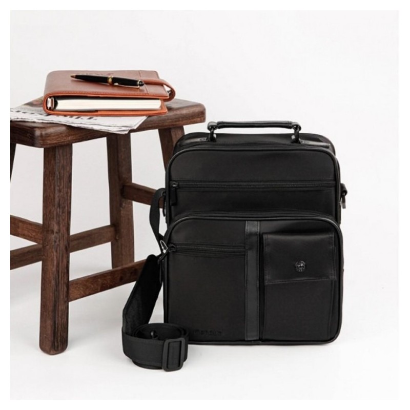 Men's casual leather shopper bag office worker cross bag Black