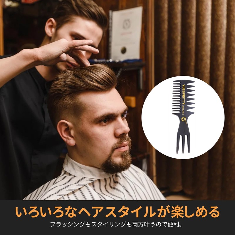 - 【STYLE DESIGN】: The oil hair comb adopts 3 different teeth design to accommodate a variety of styles. The fine teeth on the side are perfect for parting or delicate styling. The bottom teeth add natural texture and volume to create a 3D hairstyle. The wide teeth reduce strain on the hair and provide a smooth, sleek finish while preventing pulling and breakage. With this one, you can freely arrange everything from a detailed set to a natural style