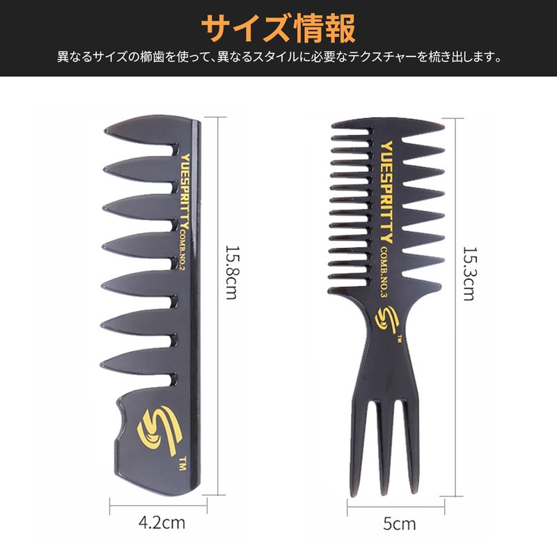 - Product Set Contents: 1. Wide Comb (6.2 x 1.7 inches (15.8 x 4.2 cm)), Side Part All Back, Slightly Side Part All Back, Reusent Hair and Mohawk Set. Provides firm hair alignment and ideal style. 2. Mesh Comb (15.3 x 5cm) Simple Gradient Side Part All Back, Suitable for Making All Back Slightly Side Parts. Uniform finish and natural style