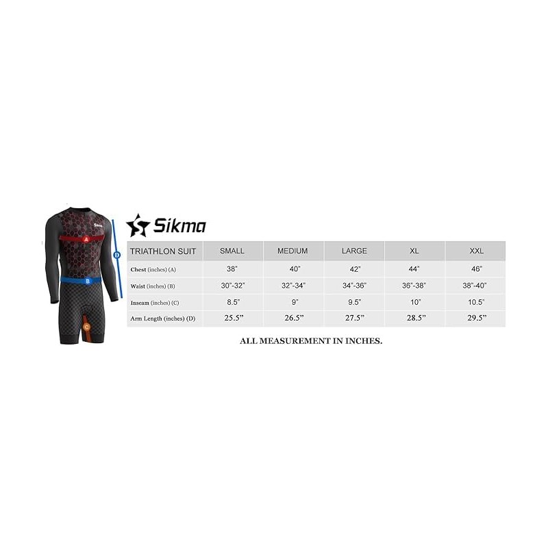 • Sikma Men's Cycling Skinsuit Full Sleeve Gel Padded Aerodynamic One Piece Triathlon Triathlon Navy L