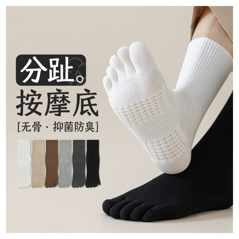 Men's Five-Toe Massage Sole Mid-Calf Socks for Spring/Fall - Antibacterial & Odor-Free Size/YCD2 3ea