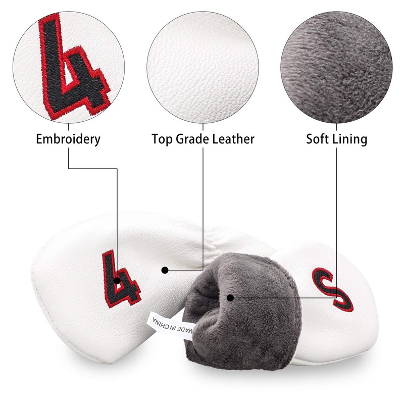 - ★Product: Golf Headcover Iron Wedge Set for Left and Right Hand Use 10 Pieces White Synthetic Leather