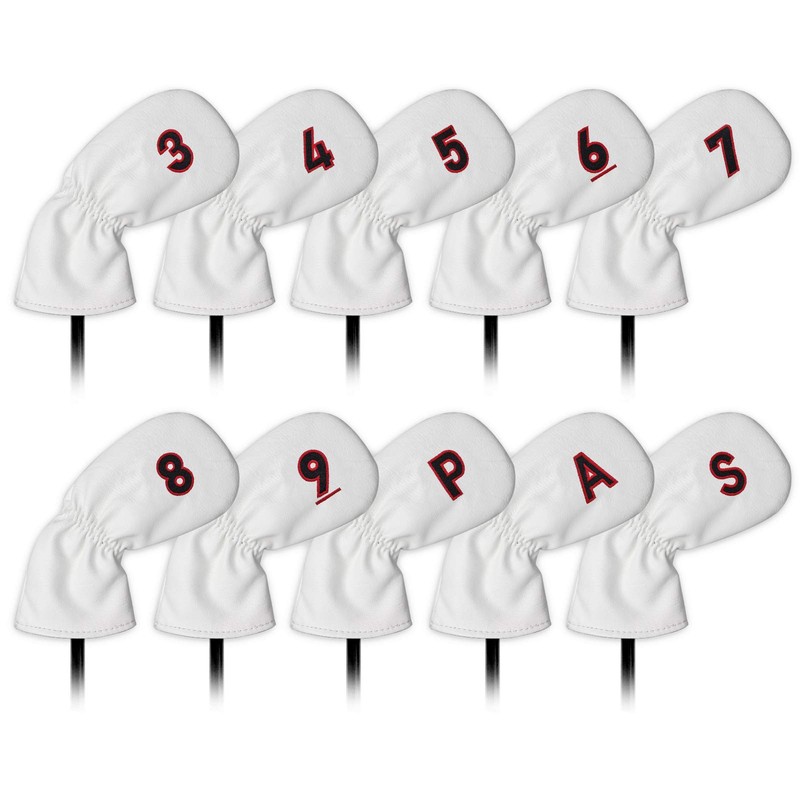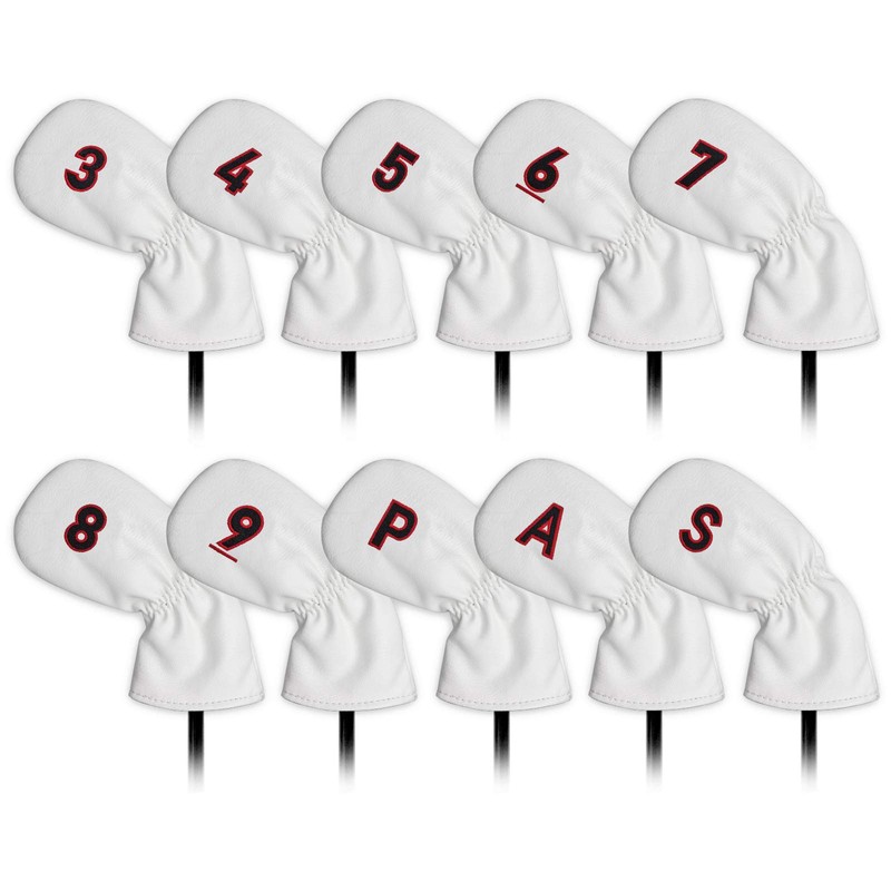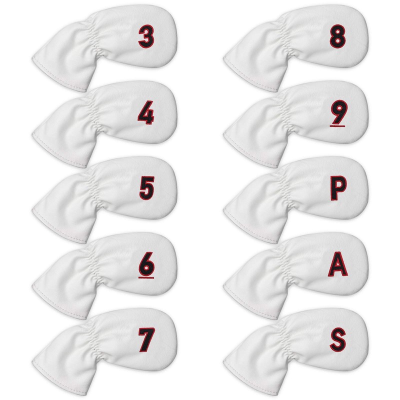 Men's Golf Headcovers Iron Club Set for Left and Right Hands, 10 Pieces (3-9,P,A,S) Red Double Sided Number Embroidery, White, Synthetic Leather, PU Leather, Long Neck, Elastic Closure