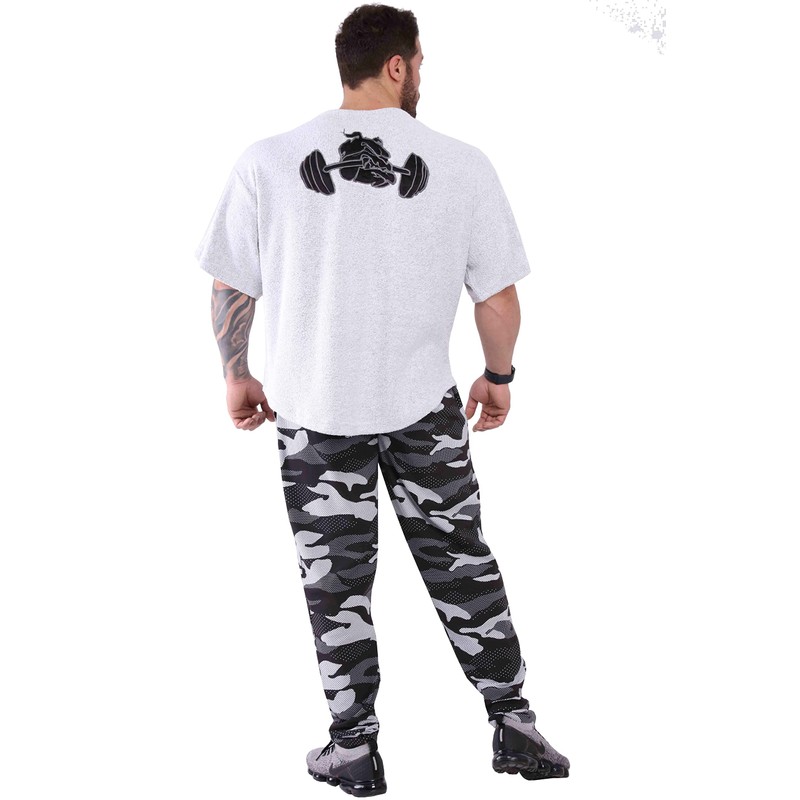 Men's Gym T-Shirt Active Wear Bodybuilding Lifting Oversize Rag Top | Towel Texture, Cotton Training Top (L, Off-White)