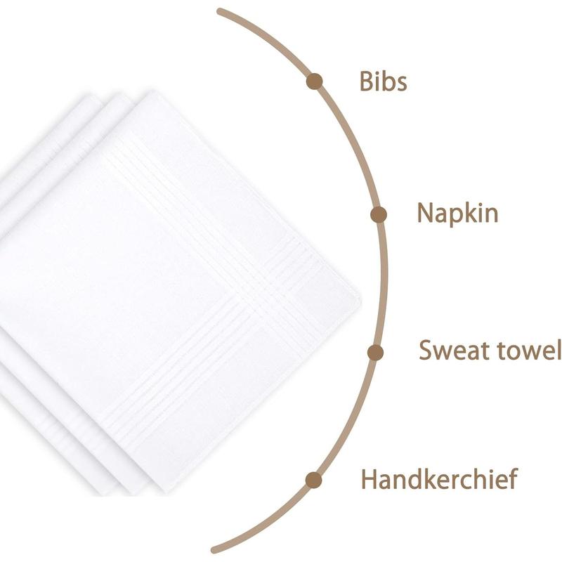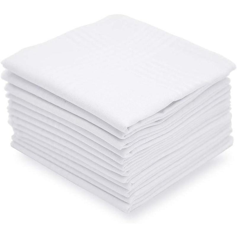 Men's Handkerchiefs Soft Cotton White Classic Hankie Pack of 12 - Color: White, Size: 12 Pcs