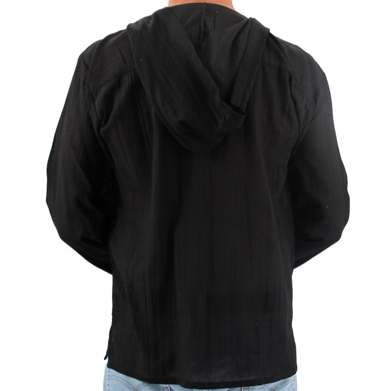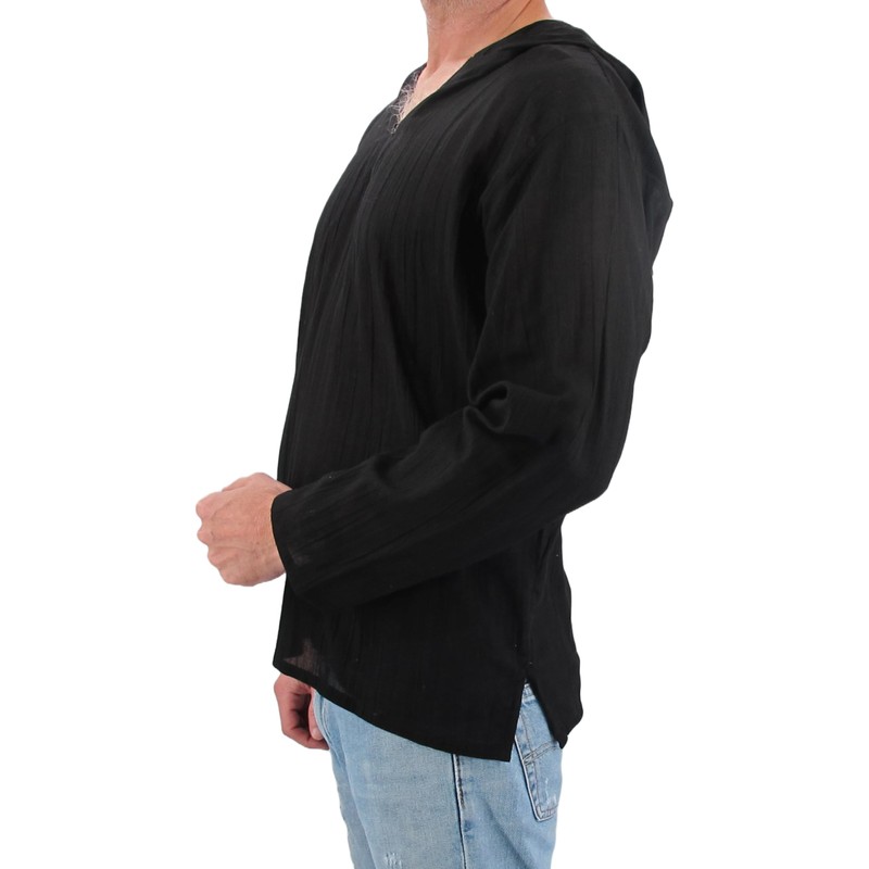 Men's Hoodie Hippie Shirts Beach 100% Soft Cotton Top Yoga Shirt Boho (Medium, Black)