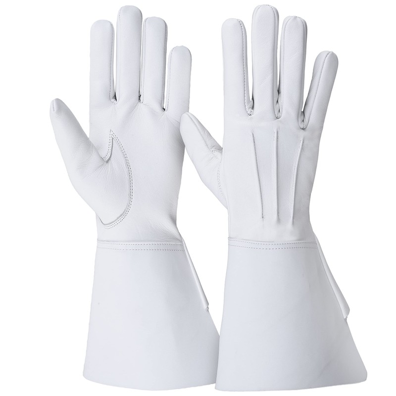 Men's Long Cuff Gauntlets Gloves Piper Drummer Band Gloves (White, M)