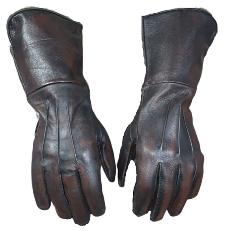 Men's Long Cuff Leather Gloves, Medieval Gloves, Made With Genuine Unlined Sheep Skin Leather, Waxed Brown (Medium)