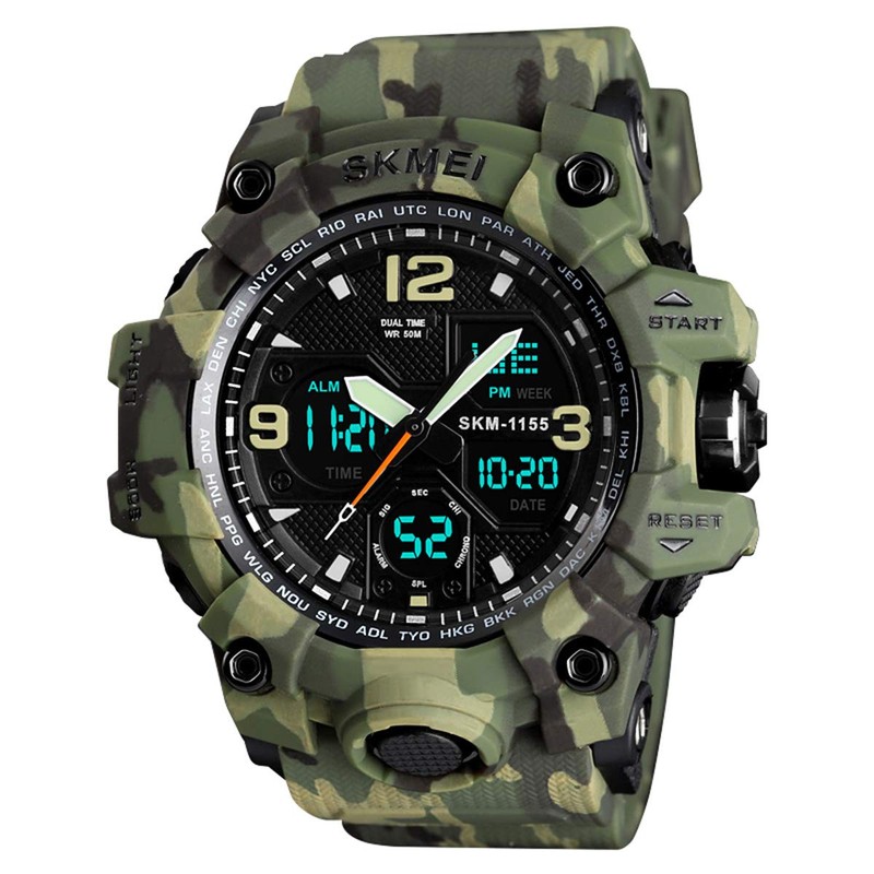 Men's Military Watch Sports Outdoor Waterproof Digital Watches with Date Multi Function Tactics LED Alarm Stopwatch Analog Watches 1155 Green Camo