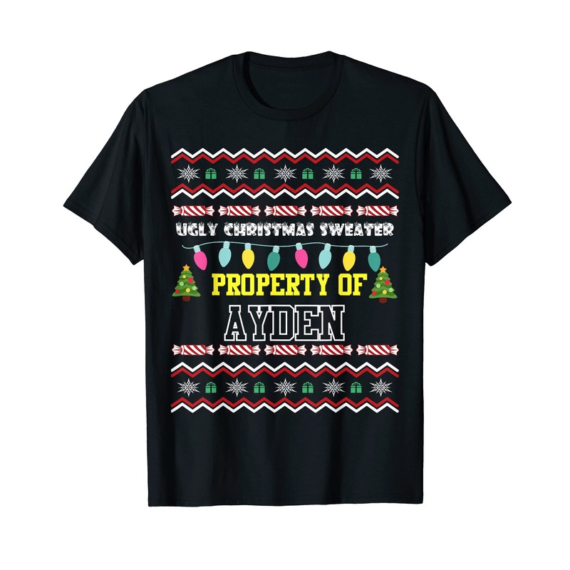 - Property of Ayden - Ugly Christmas Sweater. Check out our designs for other names, and get a matching set for work or family. Family Christmas pictures will be a hit.
