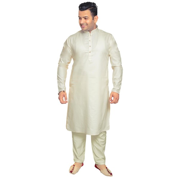 Men's Plain Soft Touch Cotton Kurta Trouser Pajama 1926 (UK, Numeric, 42, Regular, Regular, Cream)