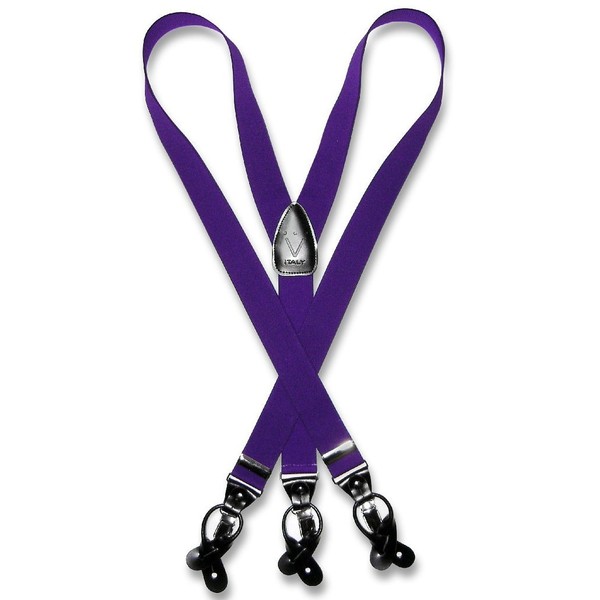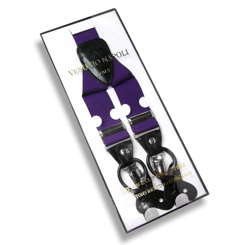 Men's Solid PURPLE SUSPENDERS Y Shape Back Elastic Button & Clip Convertible