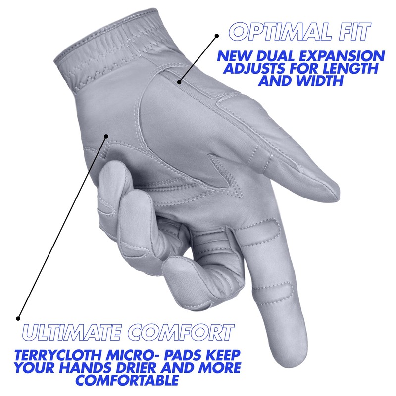 - FIRST IN CLASS FIT – NEW Dual Expansion Zone Thumb adjusts to fit any length and width for a second to none fit. Experience the best fit possible on the course today!