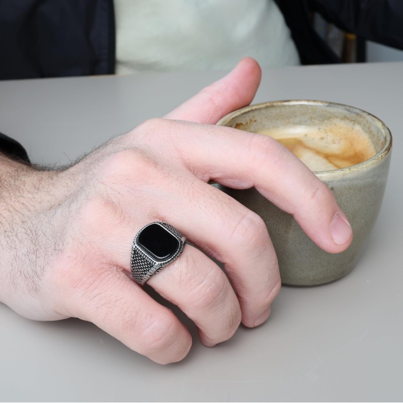 - Sophisticated Design: A bold men’s ring showcasing a unique textured pattern and a premium Black Agate Stone, delivering a timeless yet modern look that’s perfect for any occasion.