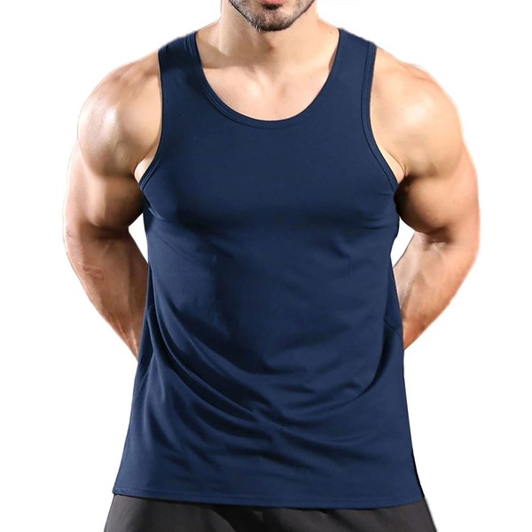 Men's Stringer Tank Tops Cotton Vest Sleeveless Gym Workout Bodybuilding Fitness Muscle T Shirts 018 01 Navy Blue 2XL