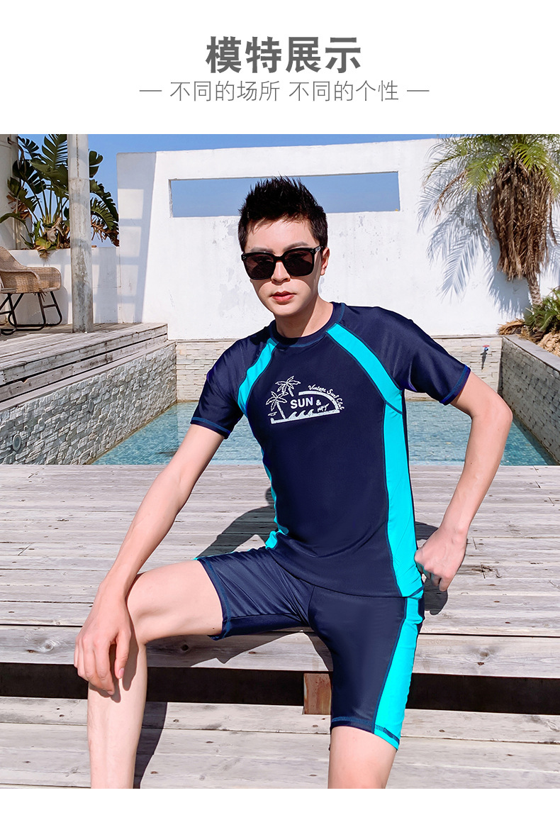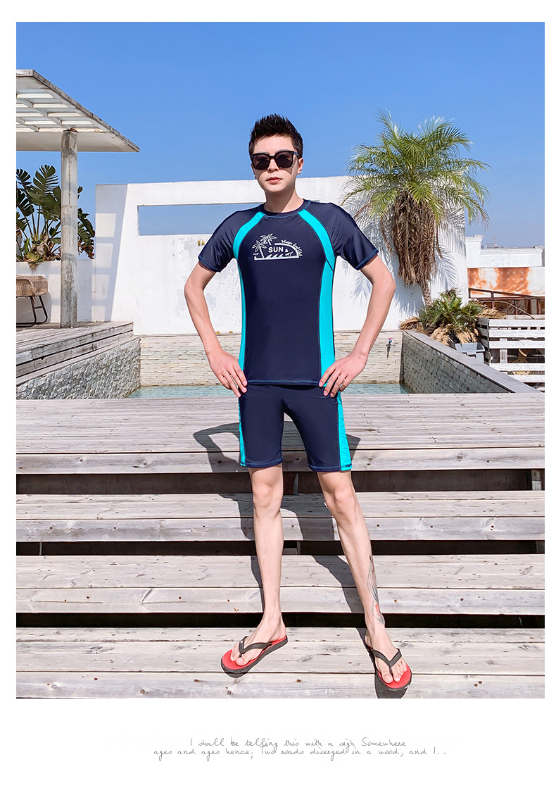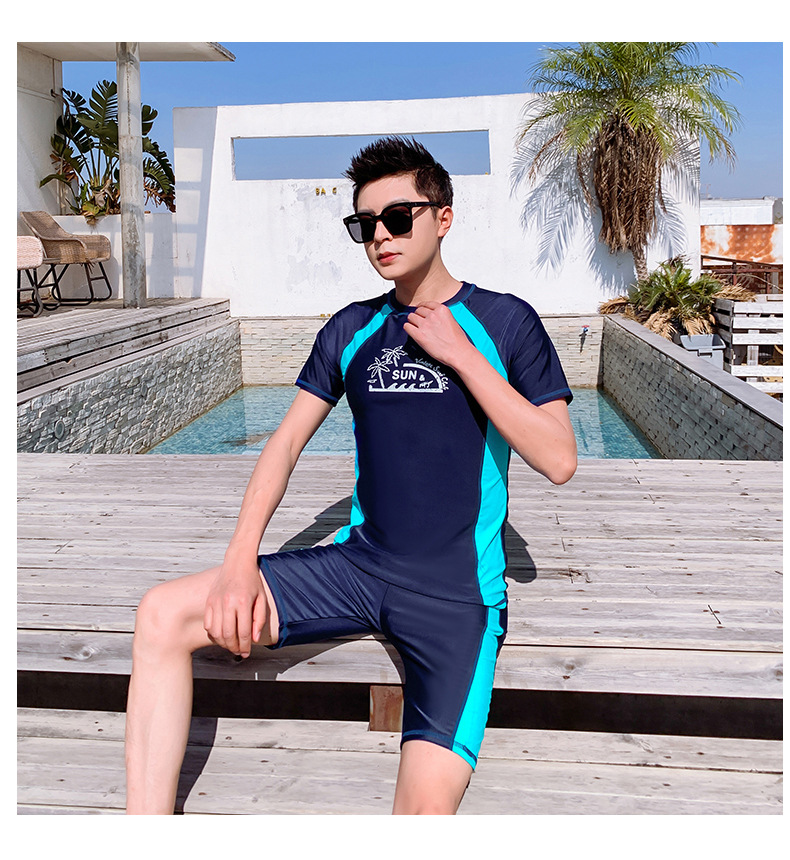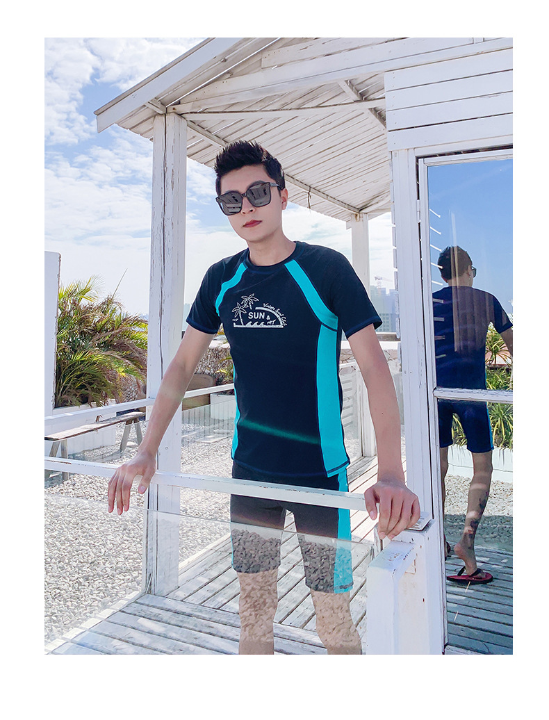 Men's Summer Split Rash Guard Set for Snorkeling & Surfing Korean XL/Blue 3ea