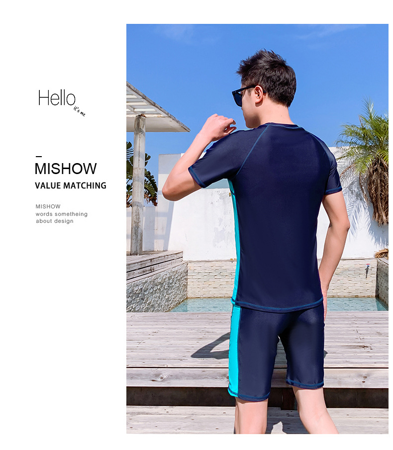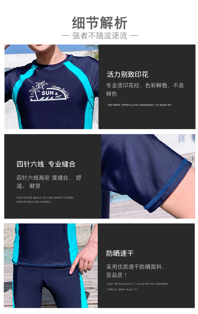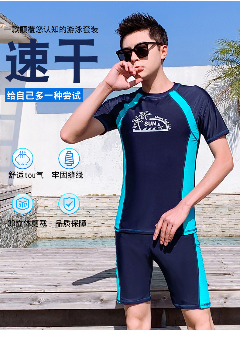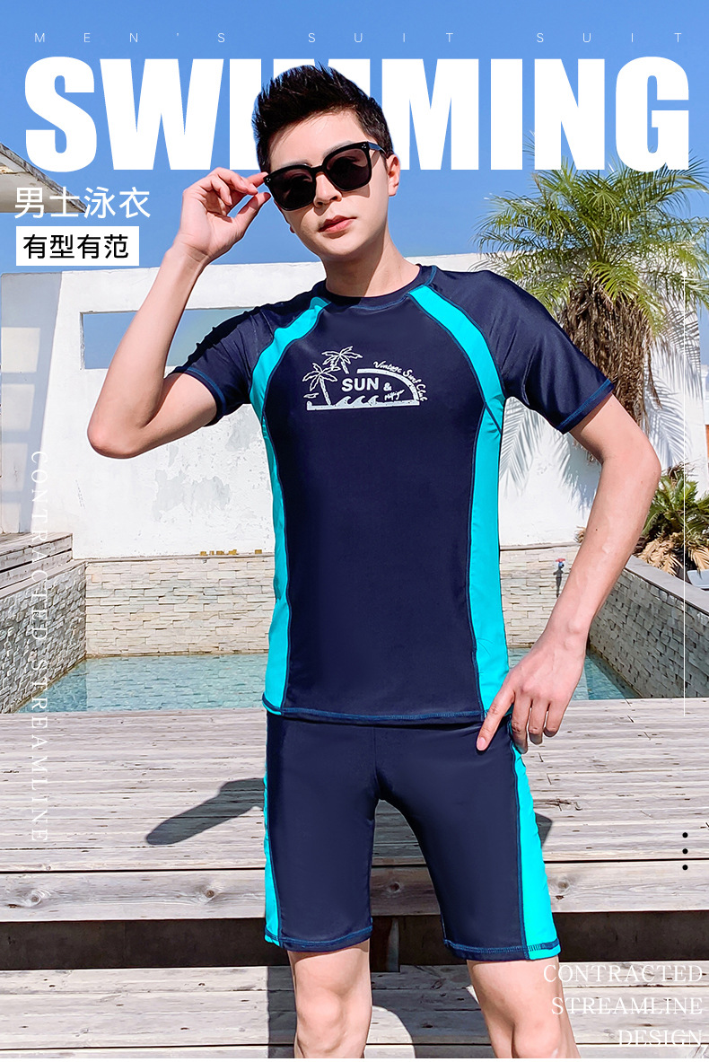 Men's Summer Split Rash Guard Set for Snorkeling & Surfing Korean XL/Blue 3ea