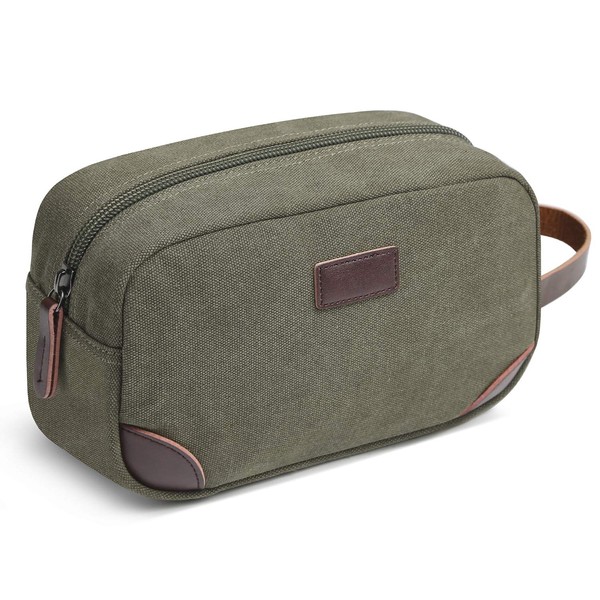 Men's Travel Toiletry Organizer Bag Canvas Shaving Dopp Kit TSA Approved (Army Green-1)