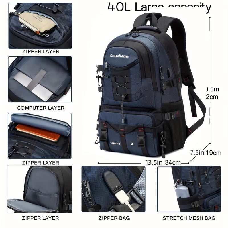 Men's Ultimate Travel Backpack: Durable, Water-Resistant & Lightweight with Detachable Belt Bag - Ideal for Hiking & Gifts - Color: Black