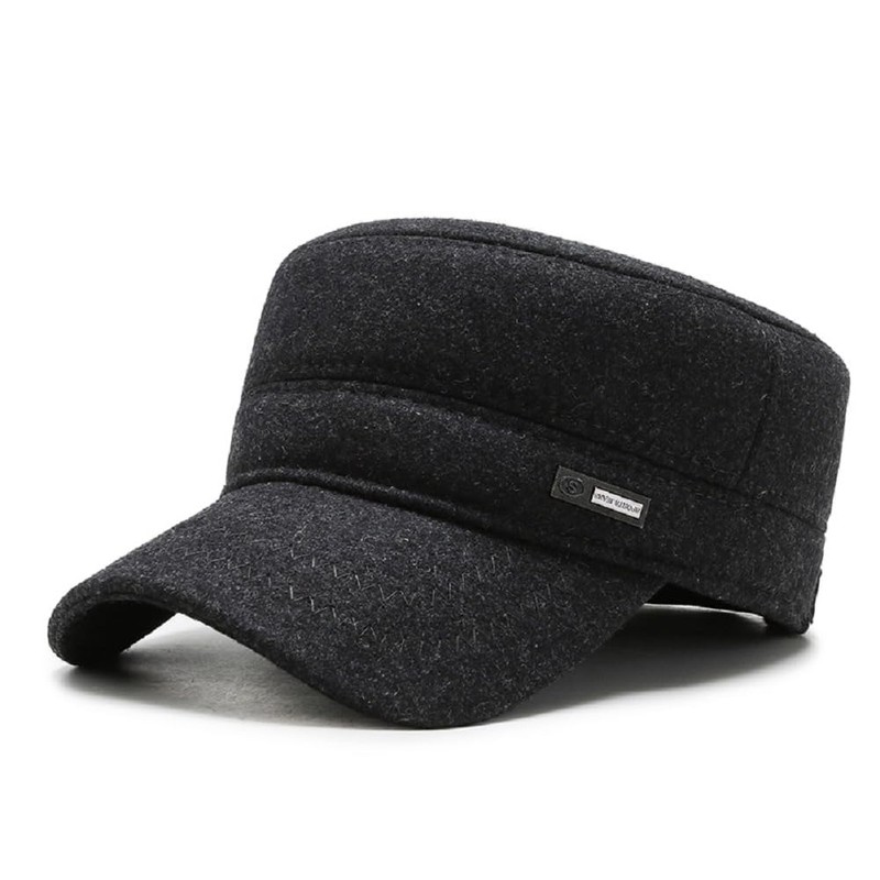Men's Winter Warm Wool Woolen Tweed Peaked Baseball Cap Hat with Fold Earmuffs Warmer, S-Grey, M