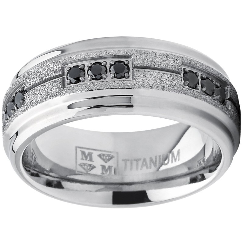 - Shimmering glitter finish,flat top design band with beveled edges. This ring is 8mm wide and is prong set with black cubic zirconia stones. ideal wedding ring to represent your love and commitment.