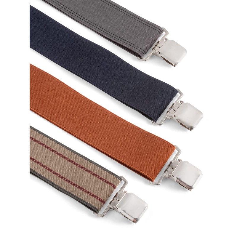 - Heavy duty, high-quality braces and suspenders made of polyester and elastane for durability