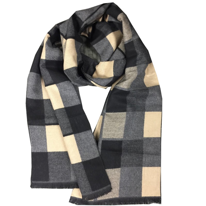 Men Scarf Winter Scarf Premium Cashmere Feeling Scarf (grey grid)