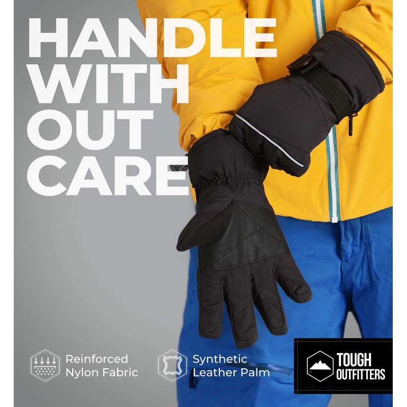 - BUILT TO LAST: Our adult winter gloves are built with a synthetic leather palm, reinforced nylon shell, and double-stitched seams. Wear with confidence because these are super durable ski waterproof gloves for men or women.