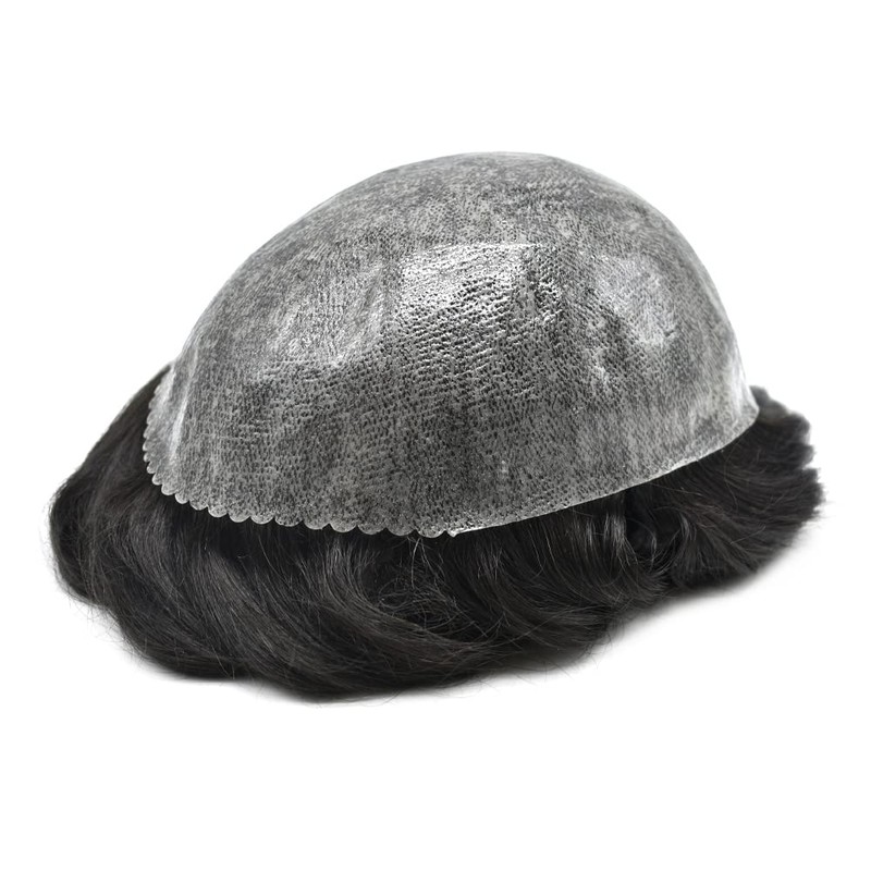 - Product Features: Full Poly Base, Thin Skin Injected PU, Durable Thickness 0.1-0.12mm.Mens Toupee Can be cut down to any size. Invisible Hairline.Human Hair Replacement System Easy to Wear with Tapes or Glue, it will feel very comfortable and invisible, you can easily apply.