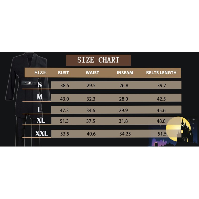 - Adult size measurement: XS: Length 49" Bust 37" Height 57-61" Weight:85-100lbs S: Length 53" Bust 41" Height 59-64" Weight:100-115lbs M: Length 57" Bust 45" Height 65-69" Weight:120-160lbs L: Length 61" Bust 49" Height 69-73" Weight:150-180lbs XL: Length 65" Bust 53" Height 73-77" Weight:170-190lbs XXL: Length 67.5" Bust 57" Height 77-79" Weight:190-240lbs