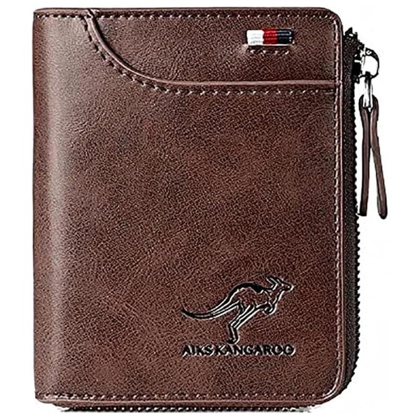 Men Wallet Zipper Genuine Leather Purs, Aiks Kangaroo Wallets, PU Stylish Soft Simple Design RFID Protected Wallet (Retro Red)