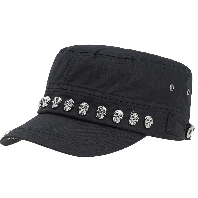 Men Women Soft Washed Cotton Skull/Skeleton Studded Punk-Army-Cap Cadet Cap Flat Cap (as8, Alpha, one_Size, Black, Medium)
